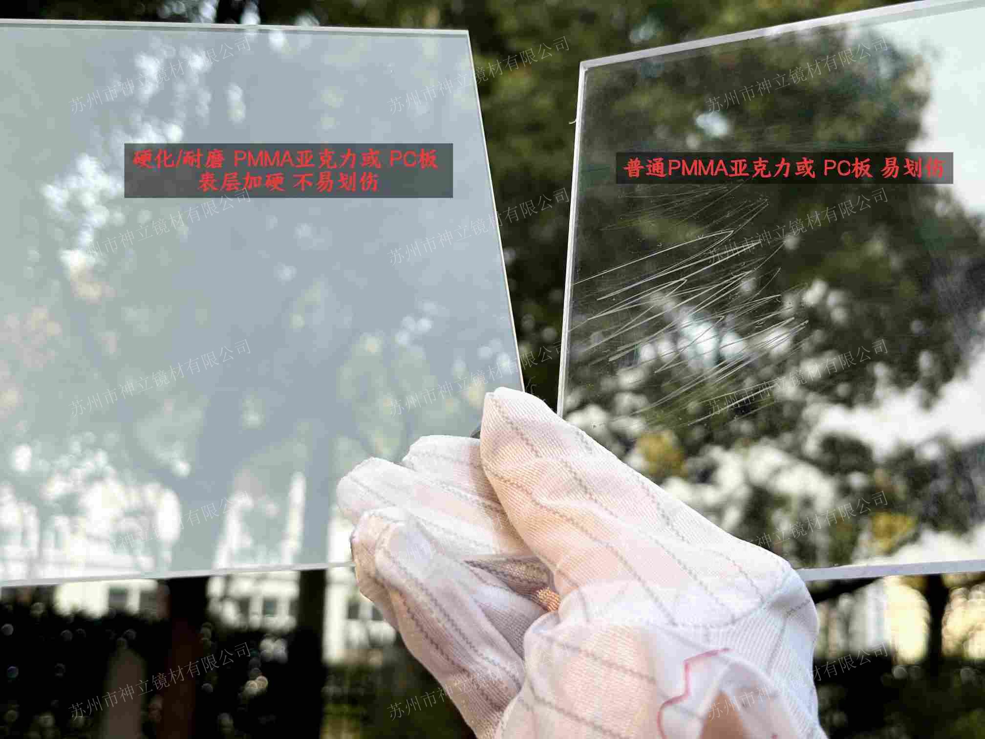 光学级硬化 PC 板:采用全新进口原料基材,搭配独家纳米硬化工艺,透光率最高达 92%,雾度控制在行业极低水平,无彩虹纹、无重影;涂层硬度最高达 H 级,耐钢丝绒摩擦近万次仍光洁透亮,抗冲击性能超普通玻璃数百倍,完美适配车载 HUD、医疗视窗、高端设备面板等严苛场景。